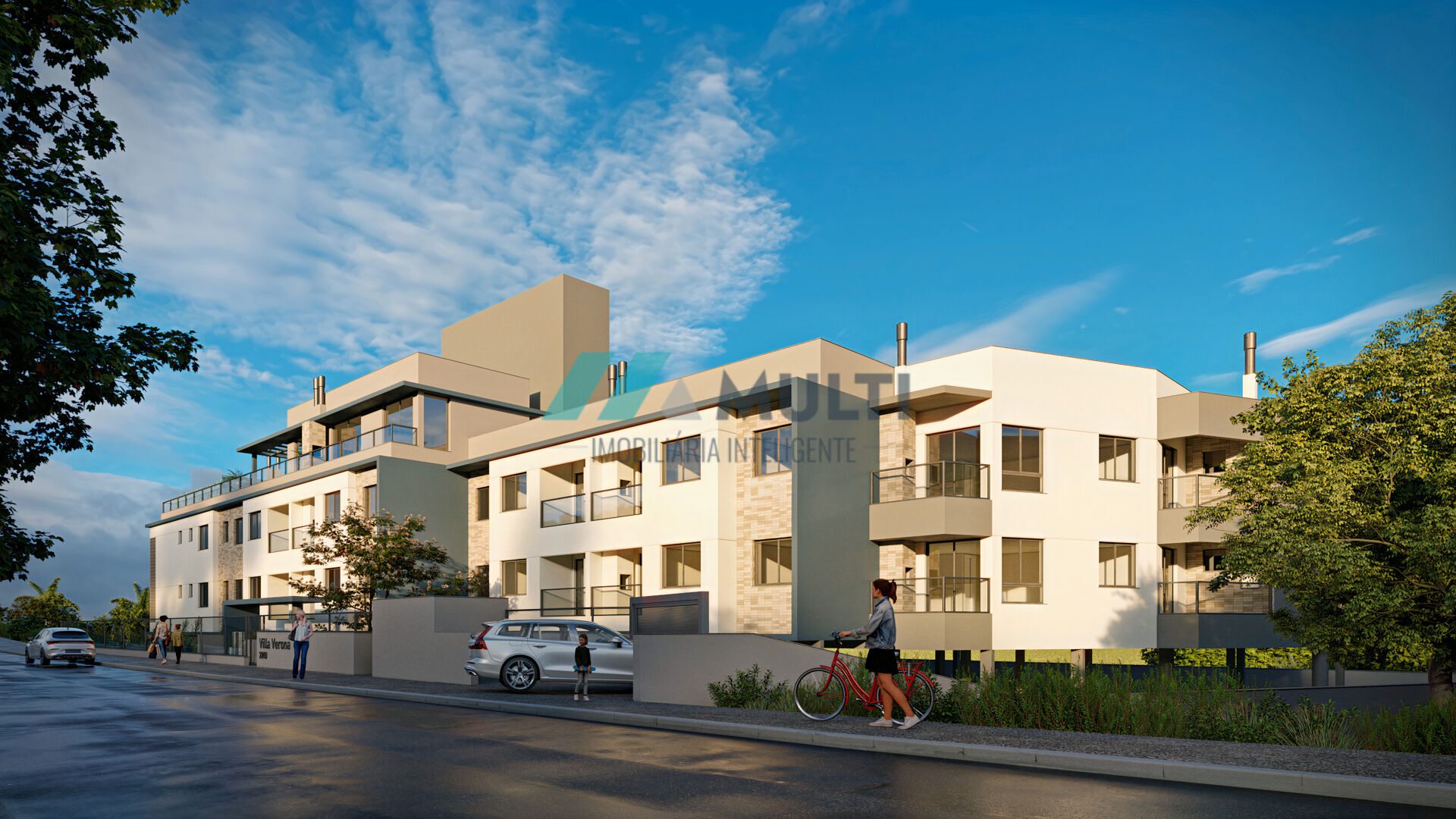 Apartamento Garden com 2 dormitórios sendo 1 suíte, cozinha, área de serviço, churrasqueira a carvão e uma vaga de garagem.